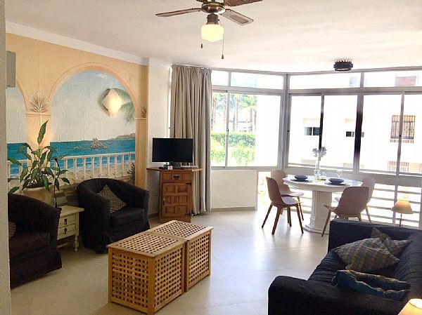 The windows get afternoon sun. The glass screens slide all the way back, letting in the sea breezes. A glass door connects from the bedroom. In the winter months the screens make the most of Nerja's winter sun, making this apartment especially ideal for wintering in Nerja.