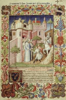 of the Mongolian hound as detail. This image shows Marco Polo in a Genoese prison, dictating his story