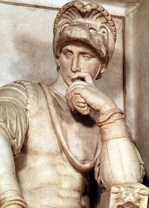 Lorenzo II, the idealized version, by Michelangelo from the Medici Tomb
