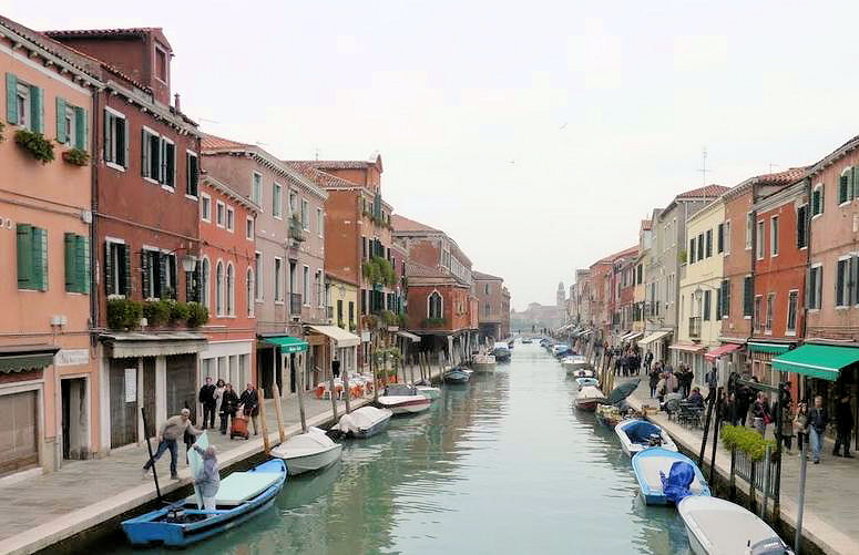 The island of Murano is a 15 minute boat ride (vaporetto,
